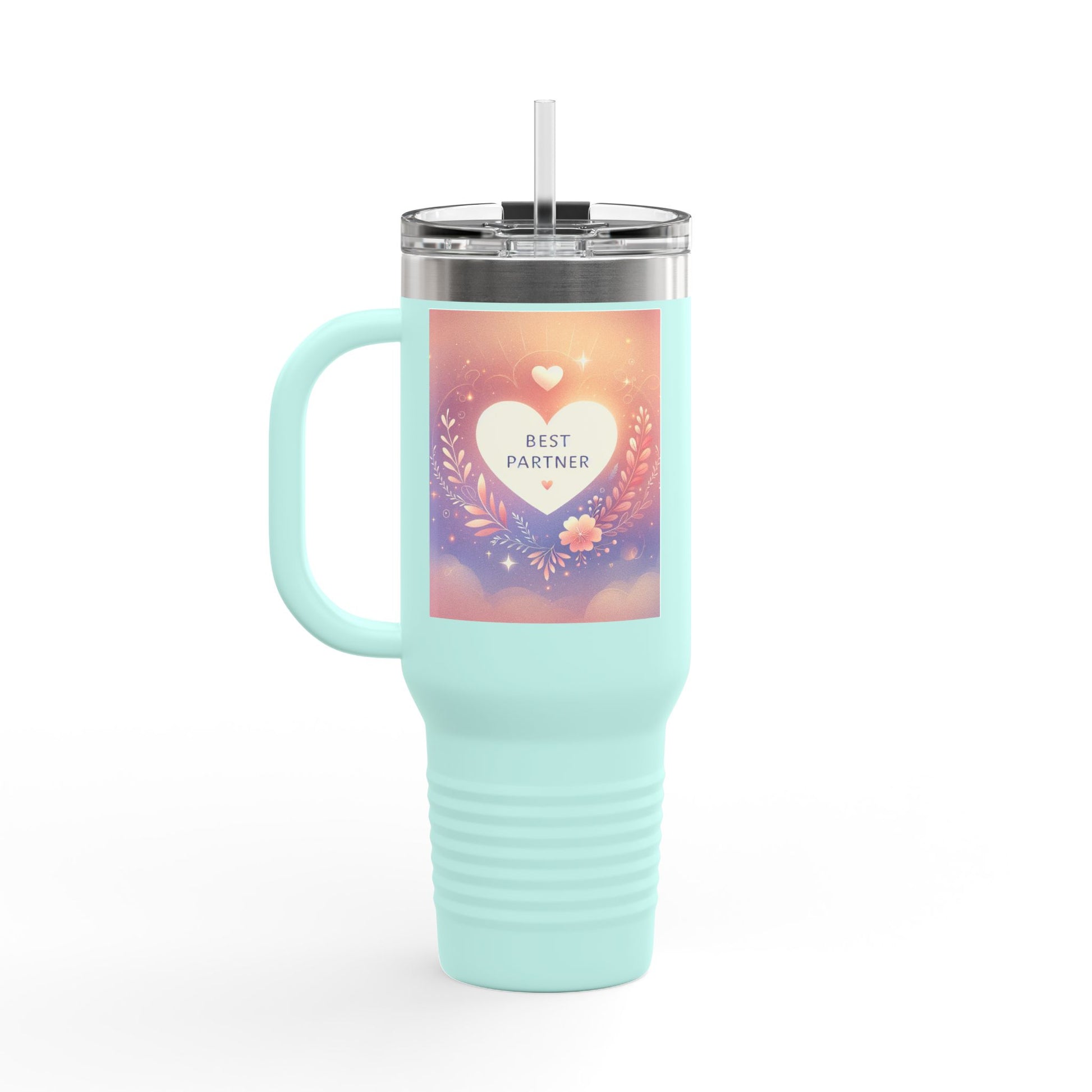 This insulated travel mug is designed for adventure, featuring a durable 100% stainless steel body and a straw with a lid for enhanced convenience on the go. With a generous 40oz (1.183l) capacity, it keeps your beverages at the perfect temperature thanks to its double-wall insulation. The powder-coated finish adds a sleek touch and is available in eight vibrant color variants so you can find that perfect match.